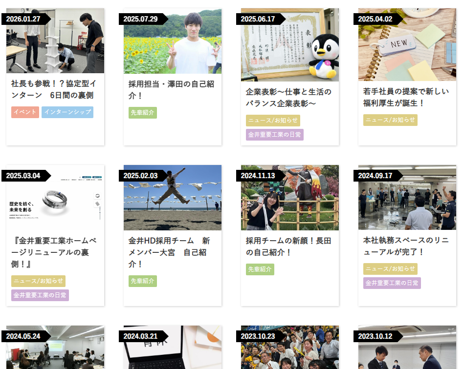 採用ブログでは他にも社長の育休日記や、若手社員からの提案で生まれた新しい福利厚生制度など